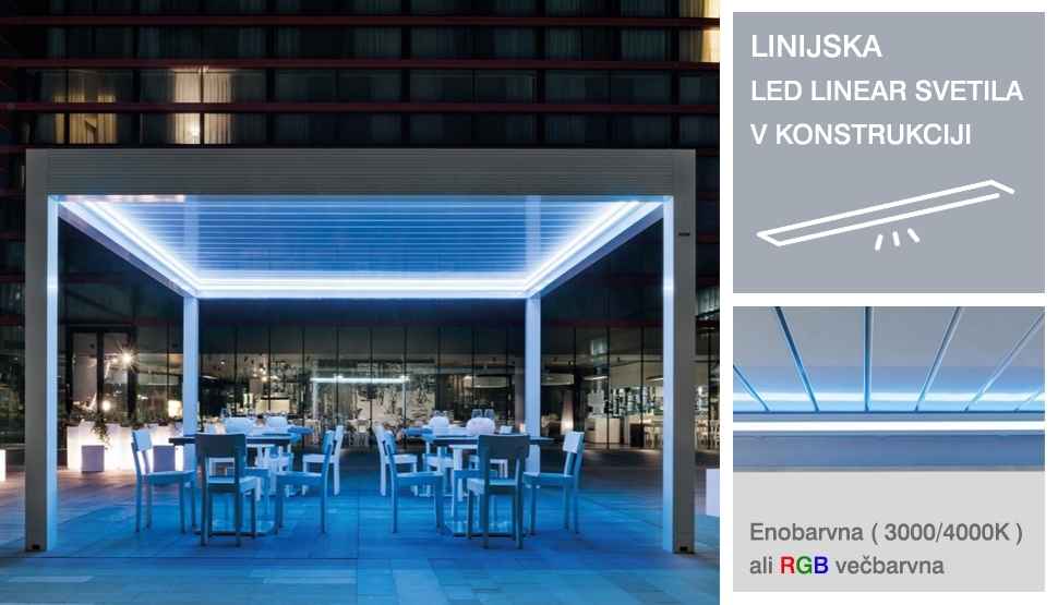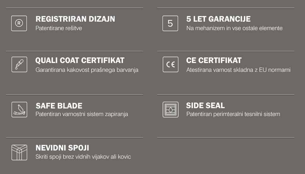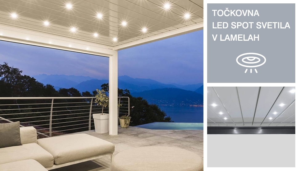➤ SIDE SEAL® patentirano tesnenje med zaprtimi lamelami in konstrukcijo pergole.